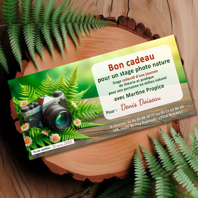 S'il s'agit d'un cadeau, merci de me l'indiquer dans le "Message à l'attention du commerçant" lorsque vous consultez votre panier et me préciser les nom et prénom à porter sur le bon cadeau.