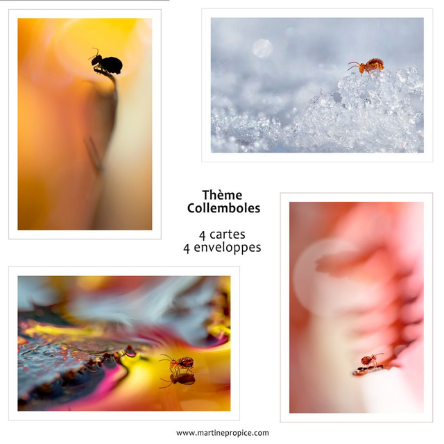 4 cartes doubles avec enveloppes Thème collemboles.